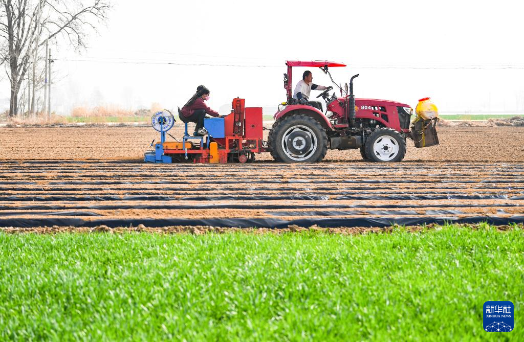 3月25日,河北省石家庄市行唐县南桥镇农民驾驶农机种植芋头。新华社发(张晓峰摄)