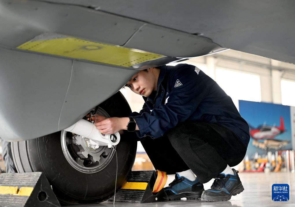 3月30日,在河南郑州上街机场,工作人员在试飞前检查运投无人机长鹰-8发动机线路。