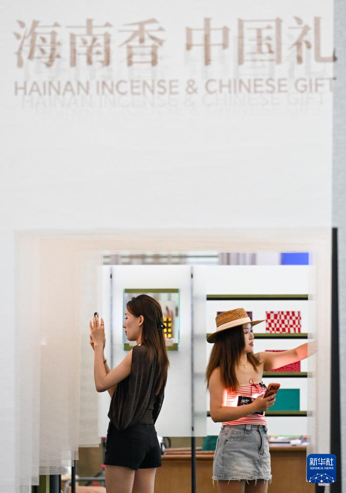 4月13日,参观者在第六届消博会主会场品鉴沉香产品。新华社记者 杨冠宇 摄