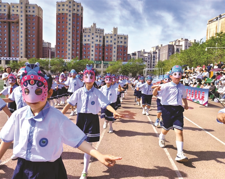 记者注意到,在当日的运动会开幕式上,除了戏曲课间操表演,还有武术操、韵律跑操和集各民族舞蹈元素为一体的特色大课间操……这些“花式”课间操,大大激发了学生的运动热情,也让学生们的课间生活更加丰富多彩。