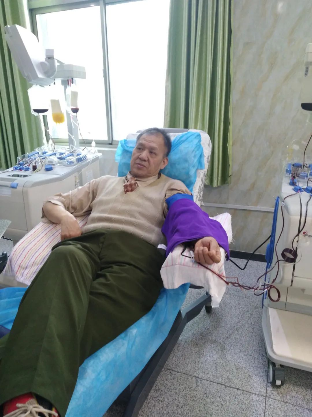 2019年2月21日,陆升甲在昌吉州中心血站捐献血小板。(阜康市委宣传部供图)