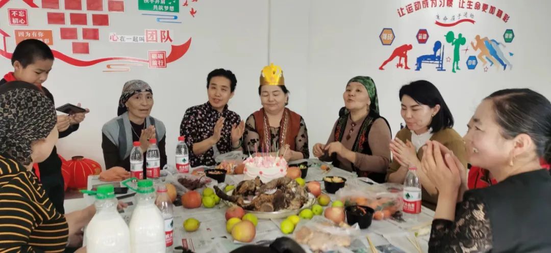 张瑞萍为困难企业职工庆祝生日。(木垒县委宣传部供图)