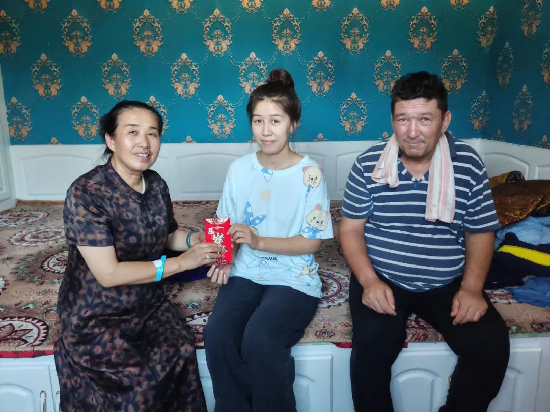 张瑞萍资助困难职工孩子上学。(木垒县委宣传部供图)
