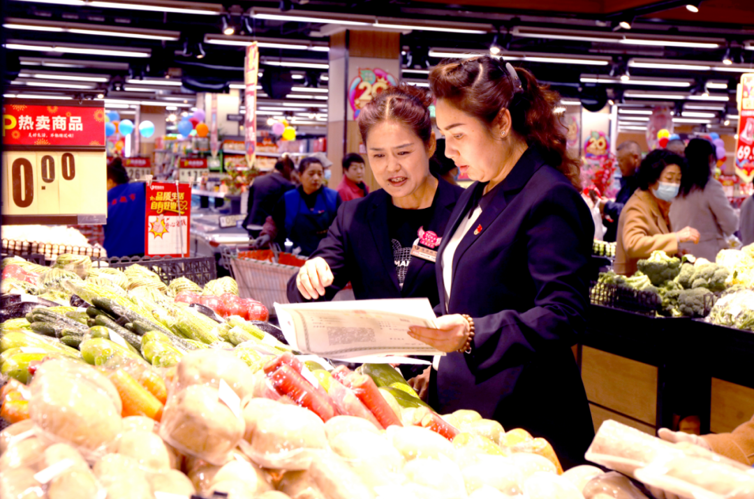 李冬梅每月检查隆源超市两门店各类商品索证、索票、台账登记,食品安全、诚信计量等。(昌吉市委宣传部供图)