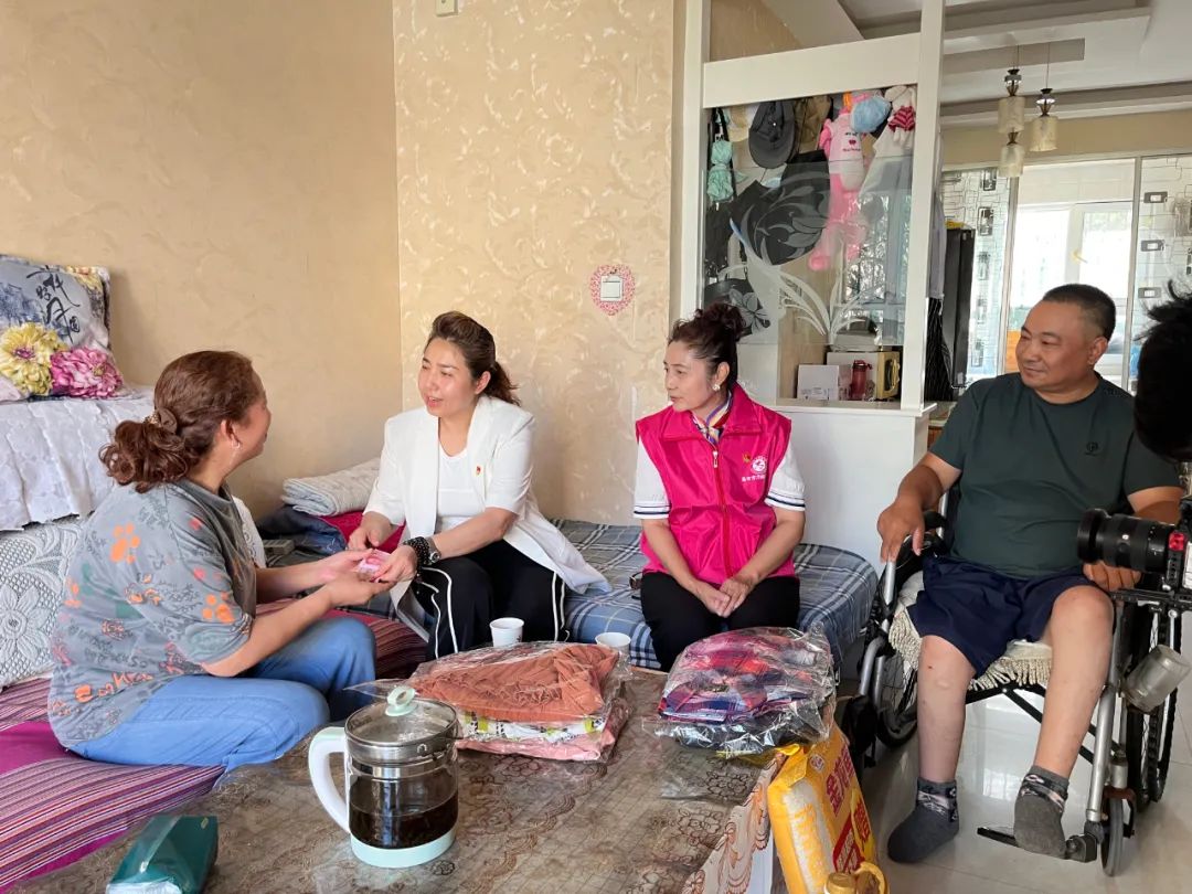 2024年7月15日,李冬梅联合苏玉琴志愿服务工作站开展“联合慰问送温暖 点滴关爱暖人心”活动,为困难家庭送去大米、清油等生活必需品和600元慰问金。(昌吉市委宣传部供图)