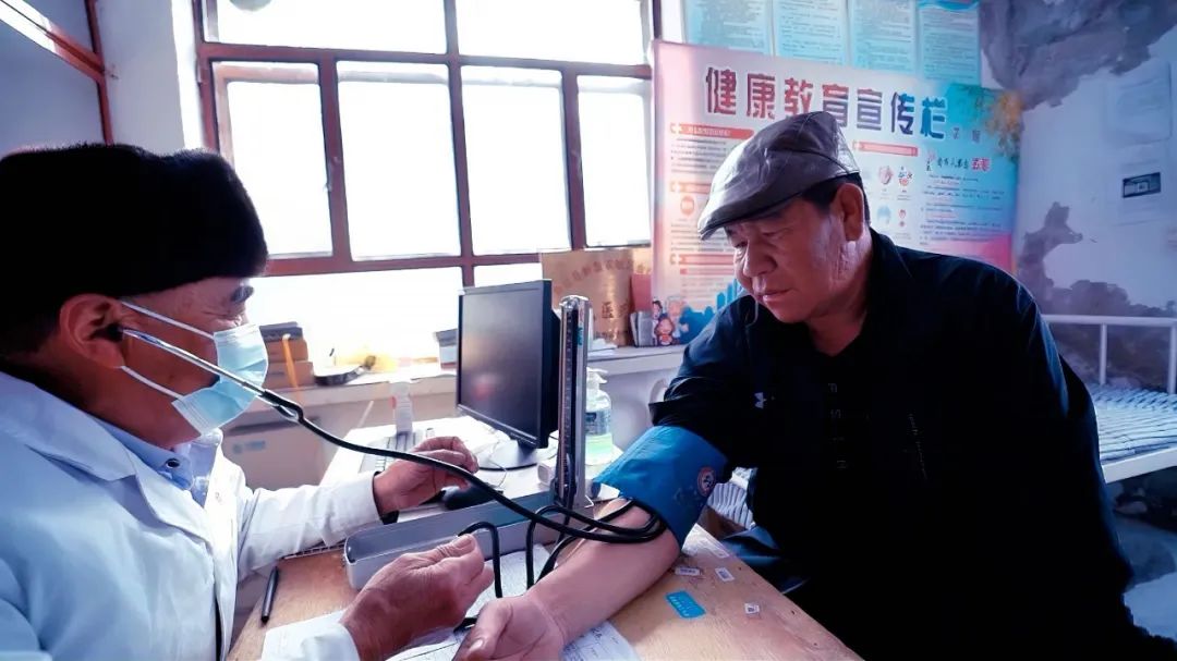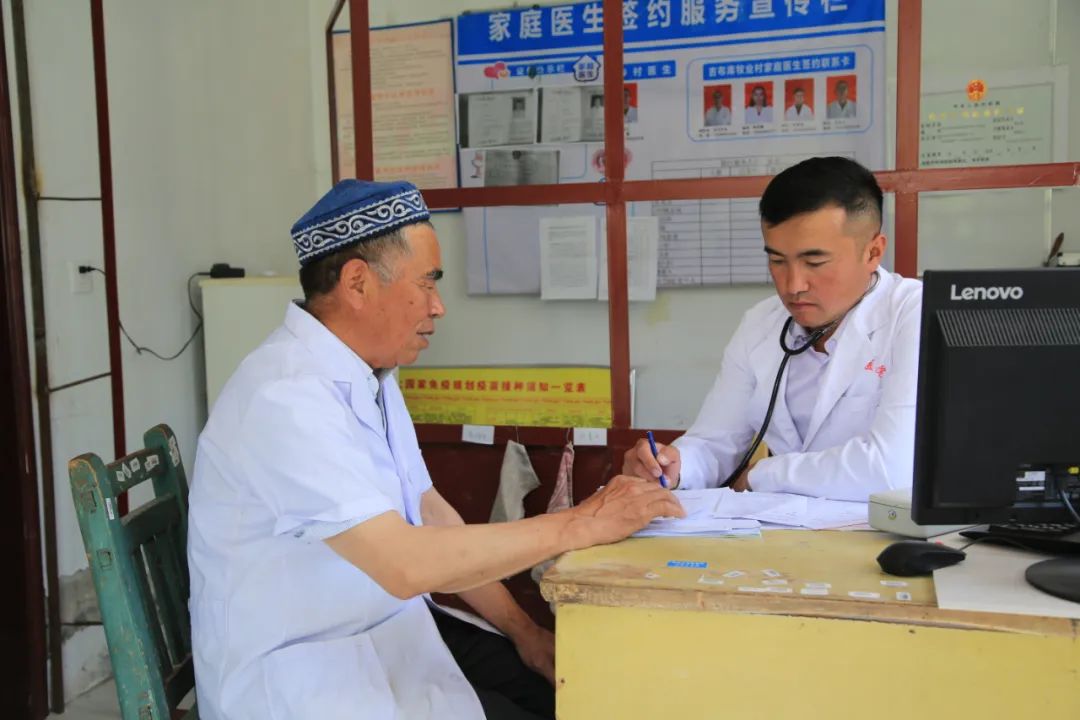 夏麦依·阿力木汗为村民量血压。(奇台县委宣传部供图)