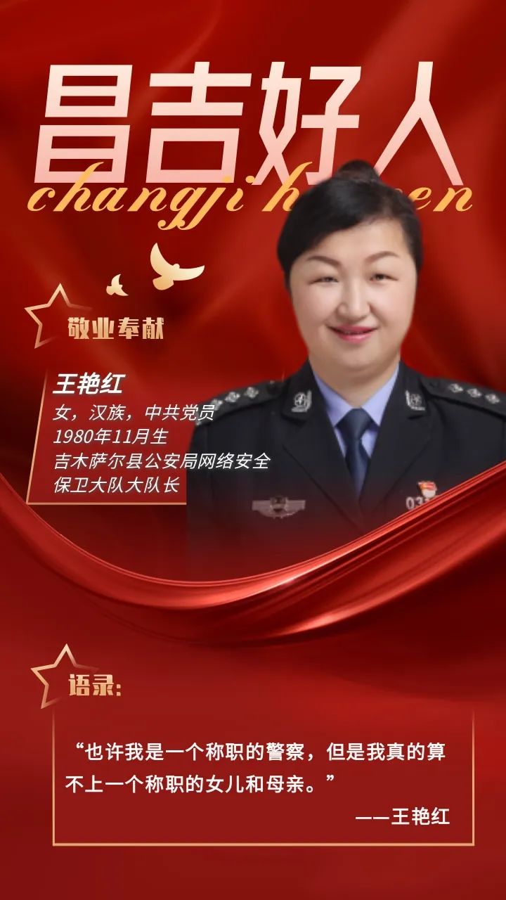 王艳红的丈夫在基层派出所工作,她既当爹又当妈,还要照顾年迈的父母,作为女儿,没有陪伴父亲手术,父亲没能走出手术室,这成了她心中永远的痛;为妻为母,作为子女,王艳红欠家庭太多,但她说得最多的,依然是那句:“我是一名人民警察”。在她的带领下,网安大队先后荣获自治区优秀基层单位、全区公安机关成绩突出集体等荣誉称号,荣立集体三等功1次、集体二等功1次。这些荣誉是她带领团队取得的,凝聚着她对公安事业的无限热爱,无限忠诚,她甘做一名无声的“最美”基层女民警。