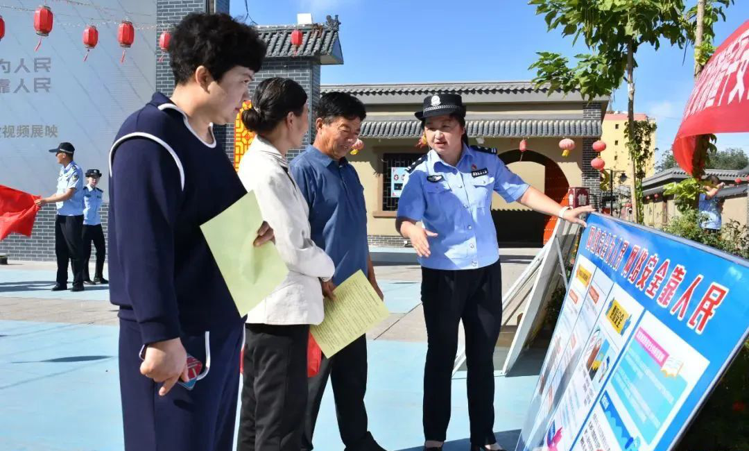 王艳红(右)向群众宣传网络安全知识。(吉木萨尔县公安局供图)