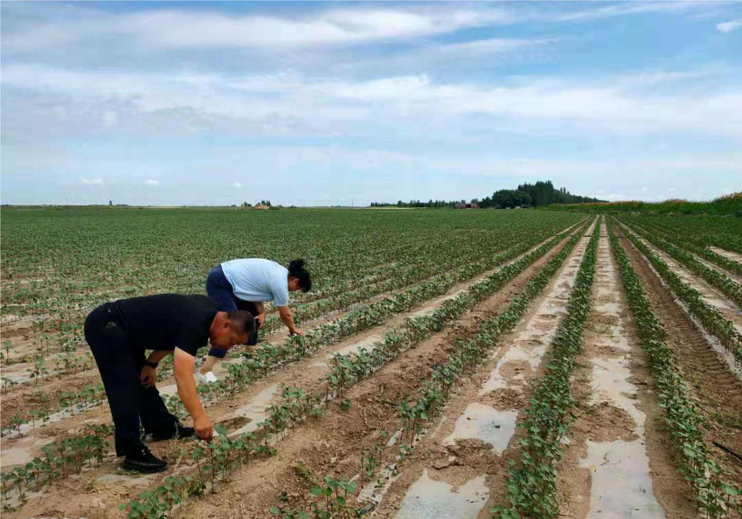 吴宝国在夏季灌溉期间深入田间地头,查看农作物生长情况。(玛纳斯县委宣传部供图)