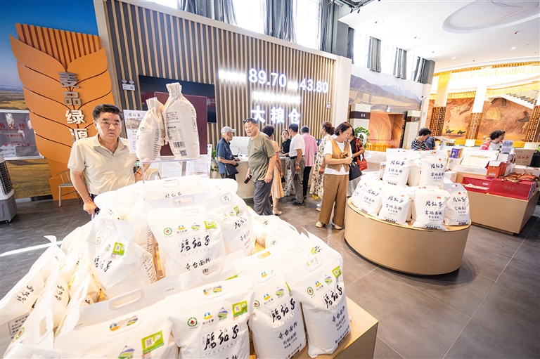 8月17日,游客在奇台县半截沟镇腰站子村小麦博物馆购买特产。