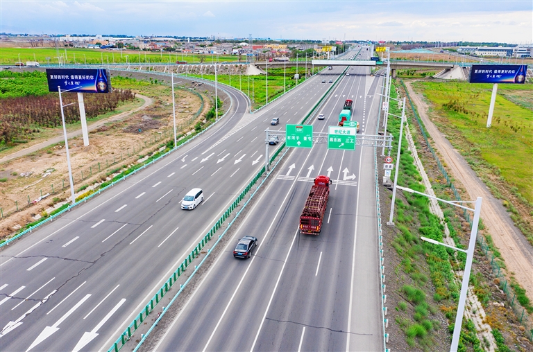6月20日,连霍高速昌吉市段,车辆在平坦的道路上行驶。
