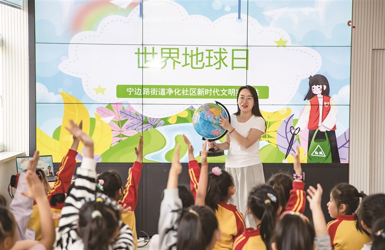 4月18日,昌吉市宁边路街道净化社区开展了丰富多彩的科普活动,社区干部通过向小朋友讲解地球构造与运转原理知识、进行科普实验、和小朋友一起创作主题画等方式,引导他们从小树立爱护地球、珍爱自然、人与自然和谐共生的理念。□中国昌吉网记者 巨海成 摄影报道