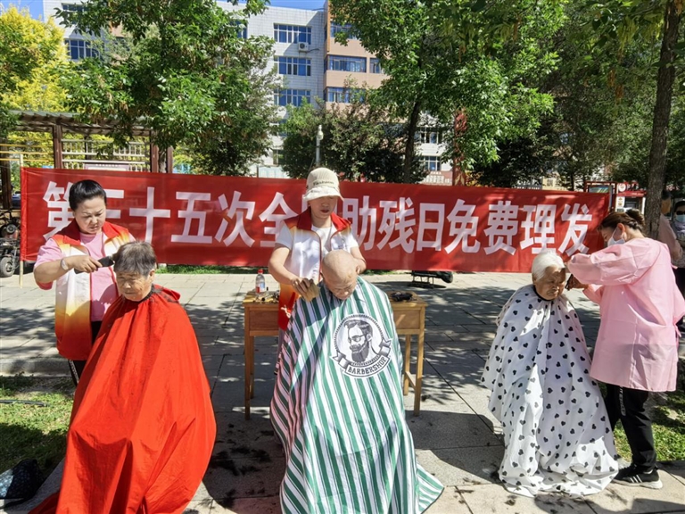 玛纳斯县残联志愿者为残疾人、老年人等特殊群体提供免费理发服务。 □戚莉平摄