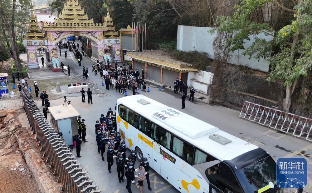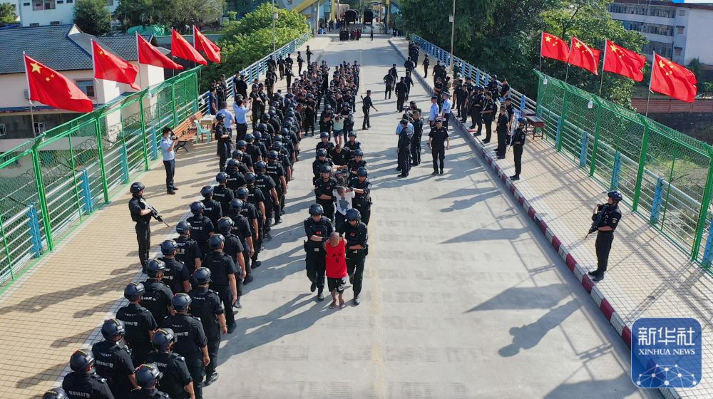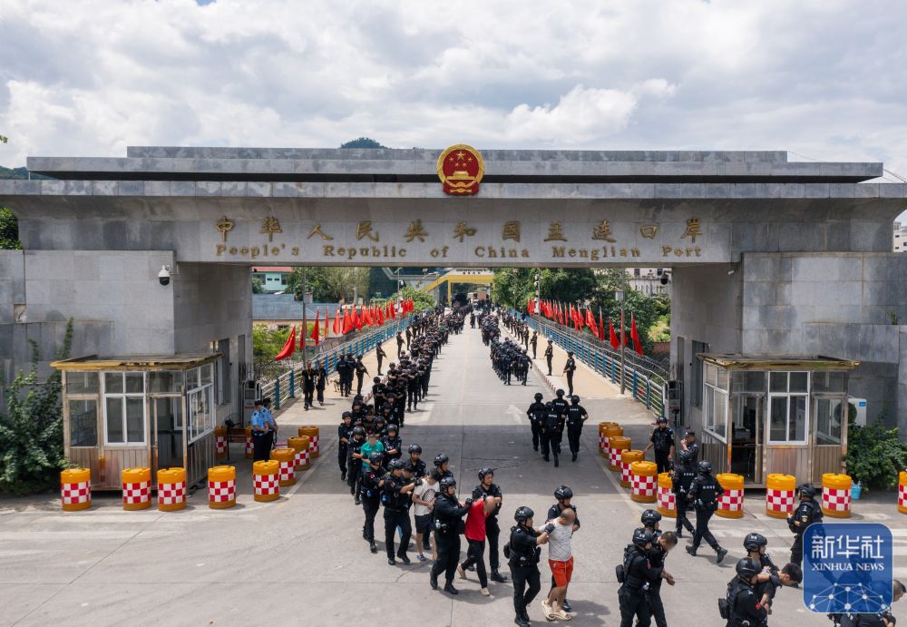 ↑在公安部和云南省公安厅指挥部署下,普洱公安机关积极与缅甸相关地方执法部门开展边境警务合作,及时向其通报诈骗窝点和人员线索。2023年9月6日,缅甸相关地方执法部门开展抓捕行动,集中向我方移交涉诈犯罪嫌疑人1207名。这是2023年9月7日,在云南省孟连口岸,中国籍电信网络诈骗犯罪嫌疑人被移交我方。新华社发(公安部刑侦局供图)