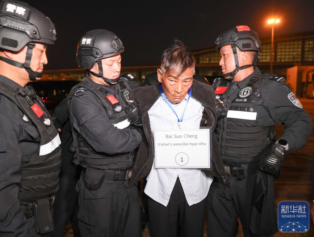 ↑2024年1月30日,在缅甸内比都国际机场,缅甸警方依法向我公安机关移交缅北重大犯罪嫌疑人白所成。针对缅北涉我电信网络诈骗犯罪严峻形势,公安部持续加强与缅甸执法部门的国际警务合作,缅甸警方依法向我公安机关移交了白所成、白应苍、魏怀仁、刘正祥、刘正茂、徐老发6名缅北果敢电诈犯罪集团重要头目和另外4名重大犯罪嫌疑人。新华社记者殷刚摄