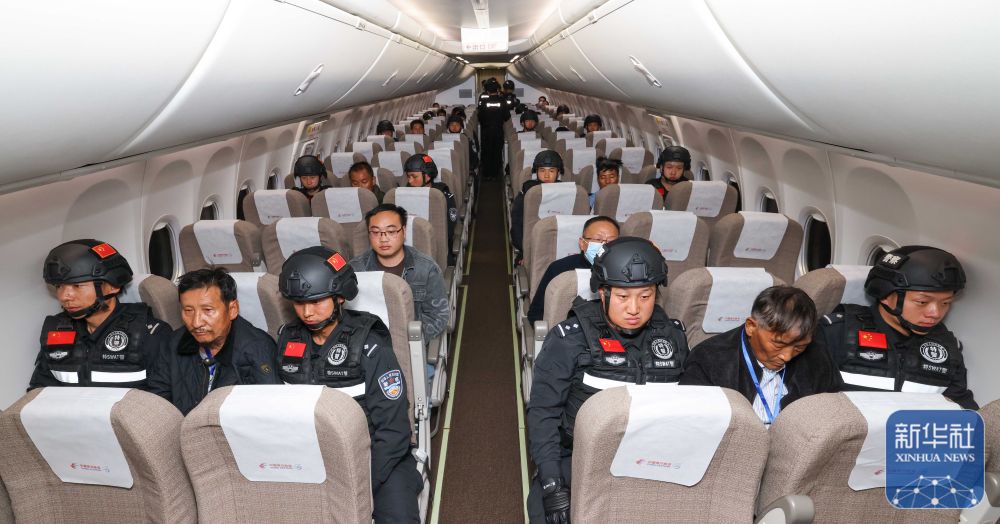 ↑2024年1月30日,白所成、白应苍、魏怀仁、刘正祥、刘正茂、徐老发等10名缅北重大犯罪嫌疑人在被押解回国的飞机上。针对缅北涉我电信网络诈骗犯罪严峻形势,公安部持续加强与缅甸执法部门的国际警务合作,缅甸警方依法向我公安机关移交了白所成、白应苍、魏怀仁、刘正祥、刘正茂、徐老发6名缅北果敢电诈犯罪集团重要头目和另外4名重大犯罪嫌疑人。新华社记者 殷刚 摄