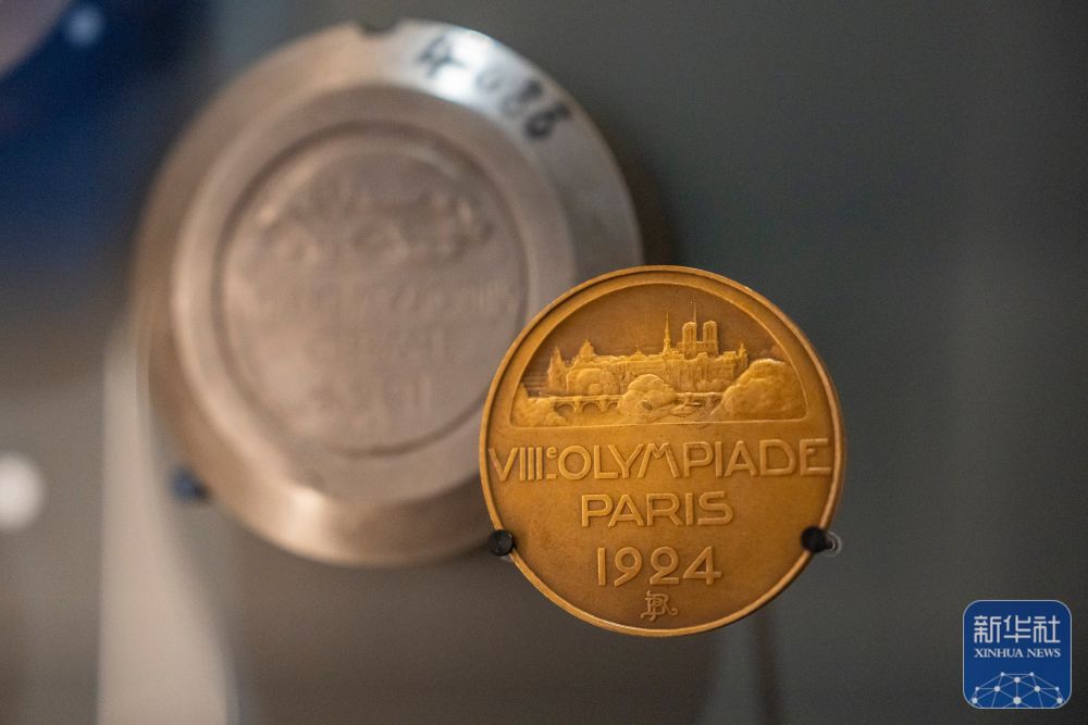 ↑这是在巴黎货币博物馆的奥运奖牌展里展出的1924年巴黎奥运会奖牌(7月6日摄)。新华社记者 许畅 摄