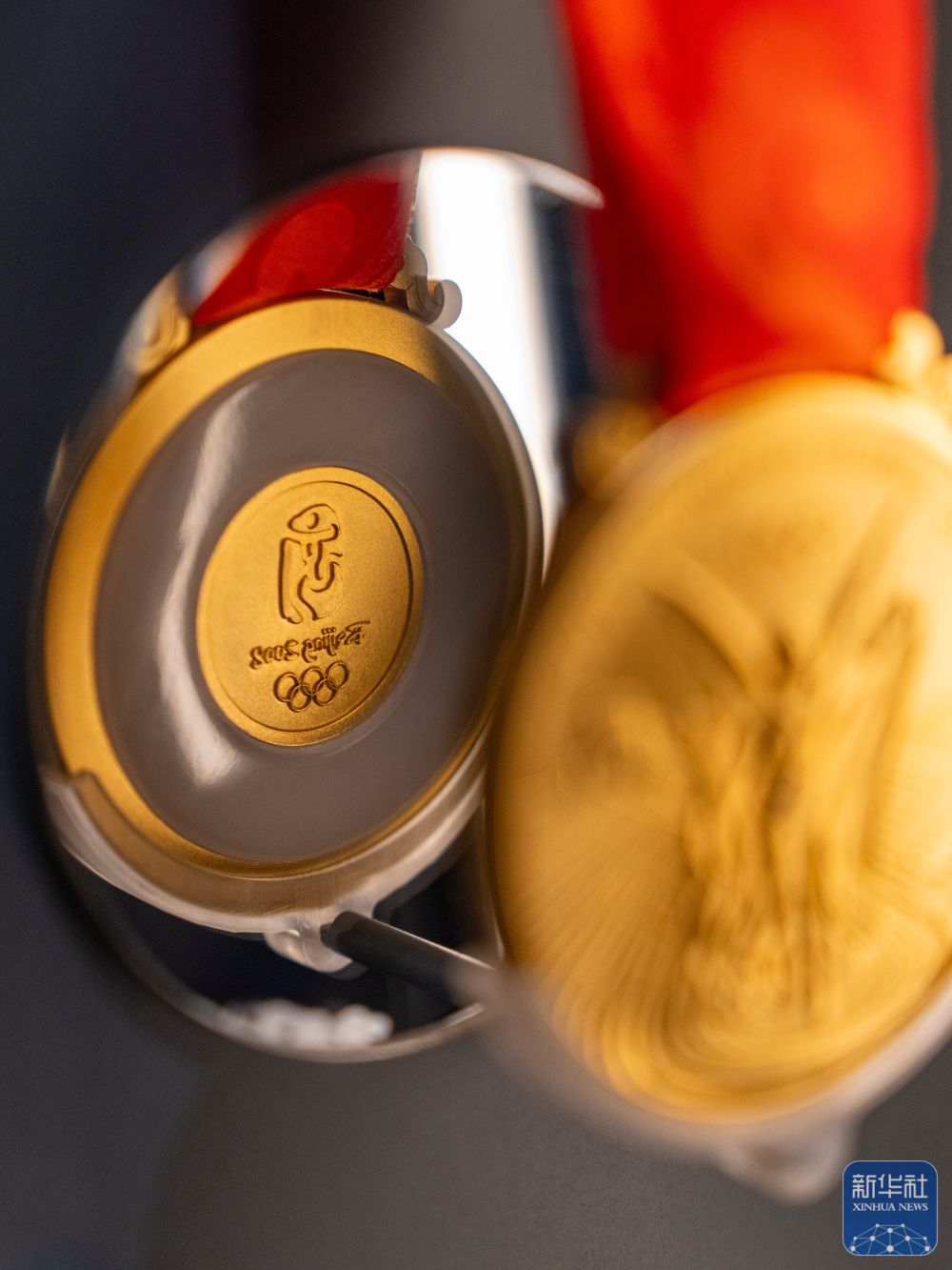 ↑这是在巴黎货币博物馆的奥运奖牌展里展出的2008年北京奥运会奖牌(7月6日摄)。新华社记者 孙非 摄