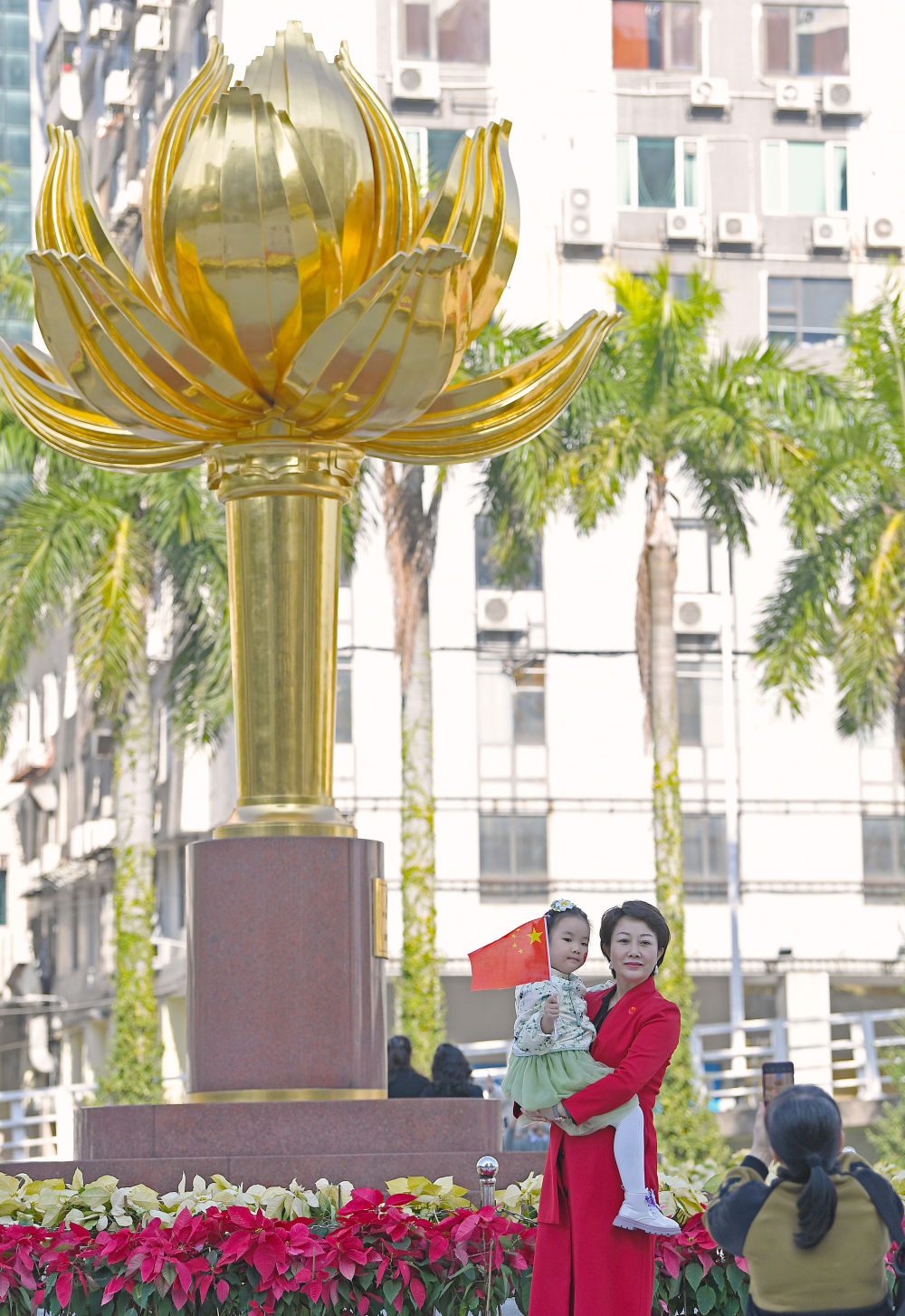 A+ A. A-12月20日是澳门回归祖国25周年纪念日。国旗区旗迎风飘扬,澳门处处洋溢着欢乐喜庆的气氛。