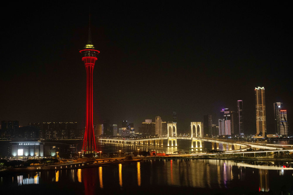 这是12月20日拍摄的澳门旅游塔、西湾大桥一带的夜景。