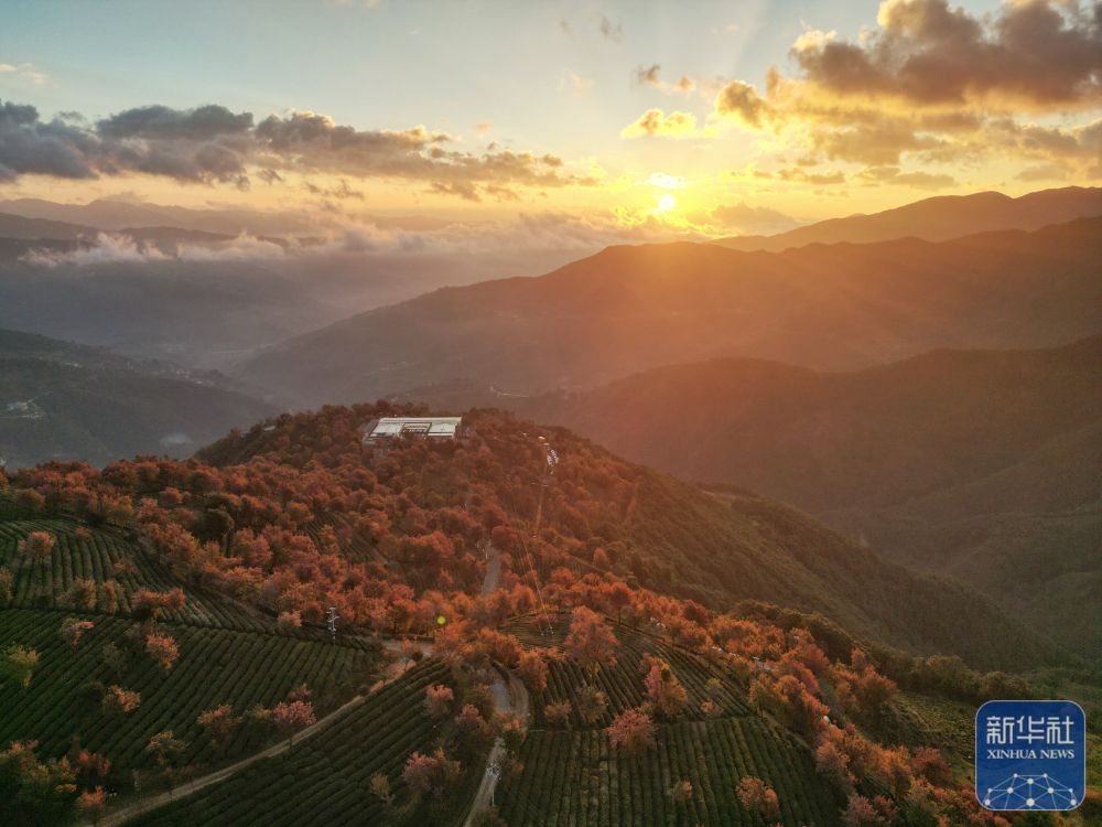 2025年1月1日在云南省大理白族自治州南涧彝族自治县无量山樱花谷拍摄的日出景象(无人机照片)。新华社发(适志宏摄)
