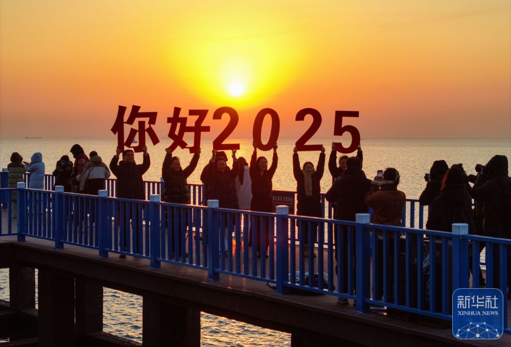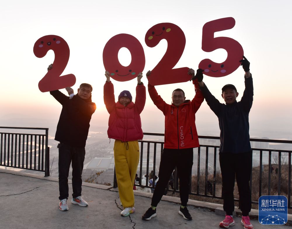 2025年1月1日,人们在安徽省巢湖市旗山迎接新年第一缕阳光。新华社发(马丰成摄)
