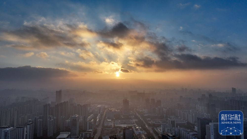 2025年1月1日在云南省昆明市拍摄的日出景象(无人机照片)。新华社发(郝亚鑫摄)