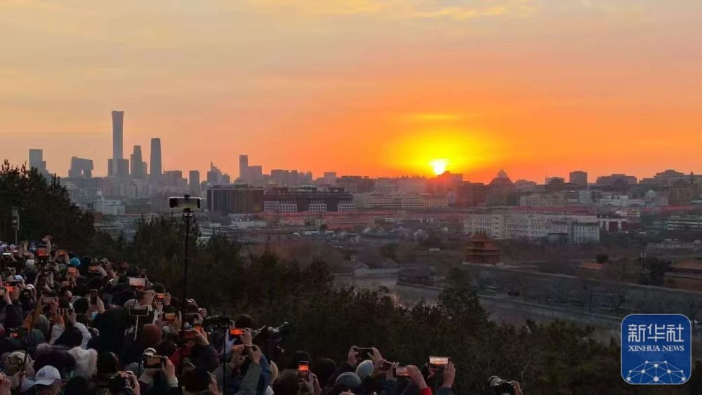 2025年1月1日,人们在北京景山公园迎接新年第一缕阳光。新华社记者 邢广利 摄