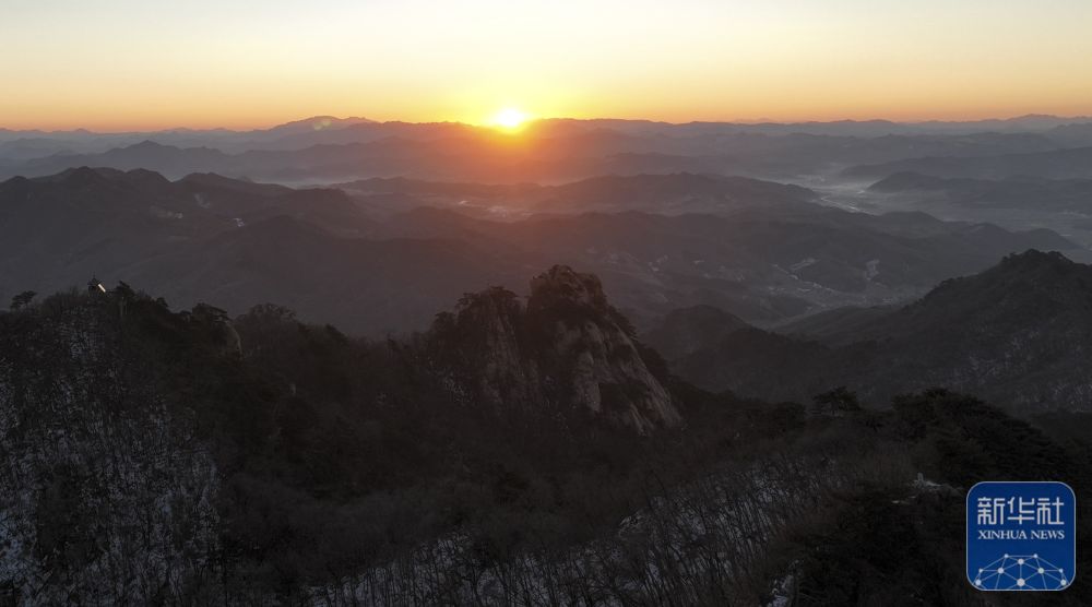 2025年1月1日在辽宁千山景区拍摄的日出景象(无人机照片)。新华社记者 李钢 摄