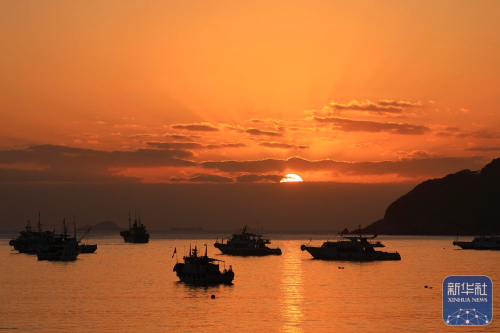 2025年1月1日在浙江舟山朱家尖乌石塘景区拍摄的日出景象。新华社发(邢守秒摄)