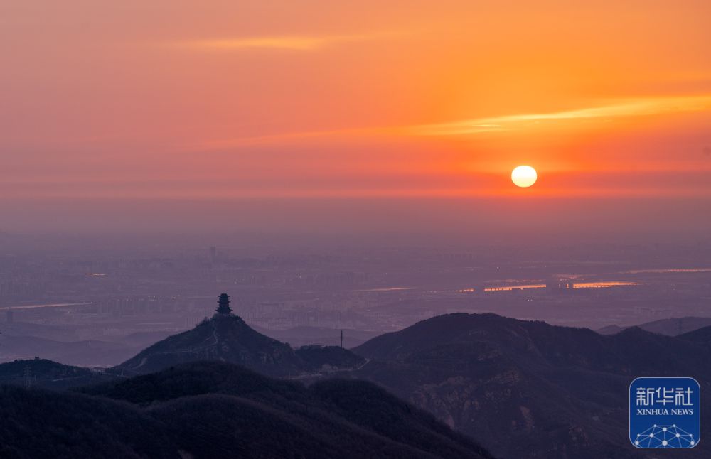 2025年1月1日在北京潭柘寺拍摄的日出景象。新华社记者 李贺 摄