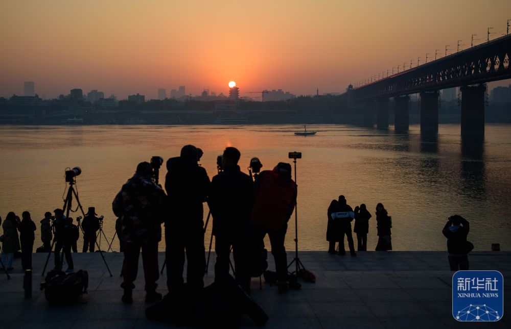 2025年1月1日,市民在湖北省武汉市长江边迎接新年第一缕阳光。新华社记者 胡竞文 摄