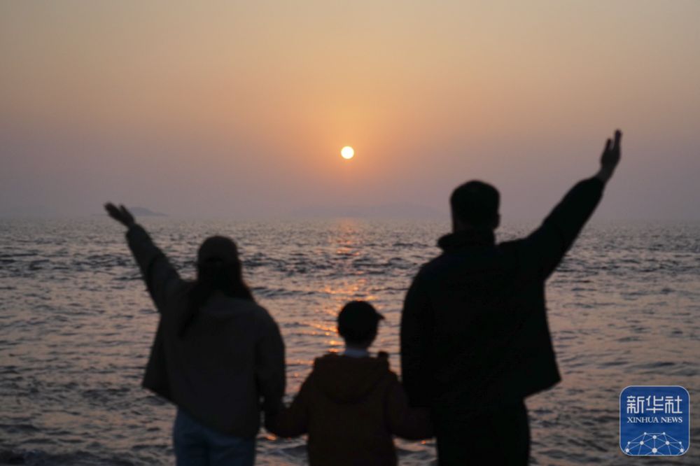 2025年1月1日,一家三口在浙江省瑞安市海滨迎接新年第一缕阳光。新华社发(庄颖昶摄)