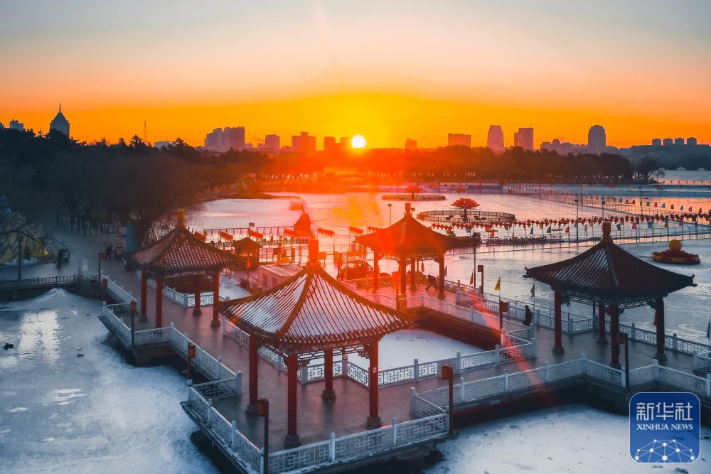 2025年1月1日拍摄的长春市南湖公园日出景象(无人机照片)。新华社记者 许畅 摄