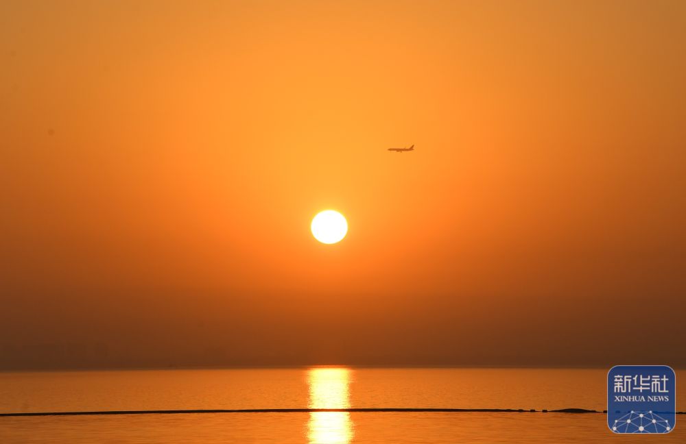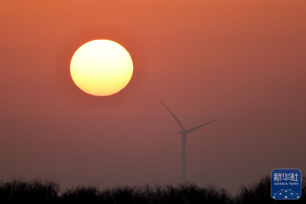 2025年1月1日在江苏省淮安市洪泽区拍摄的日出景象。新华社发(殷潮摄)