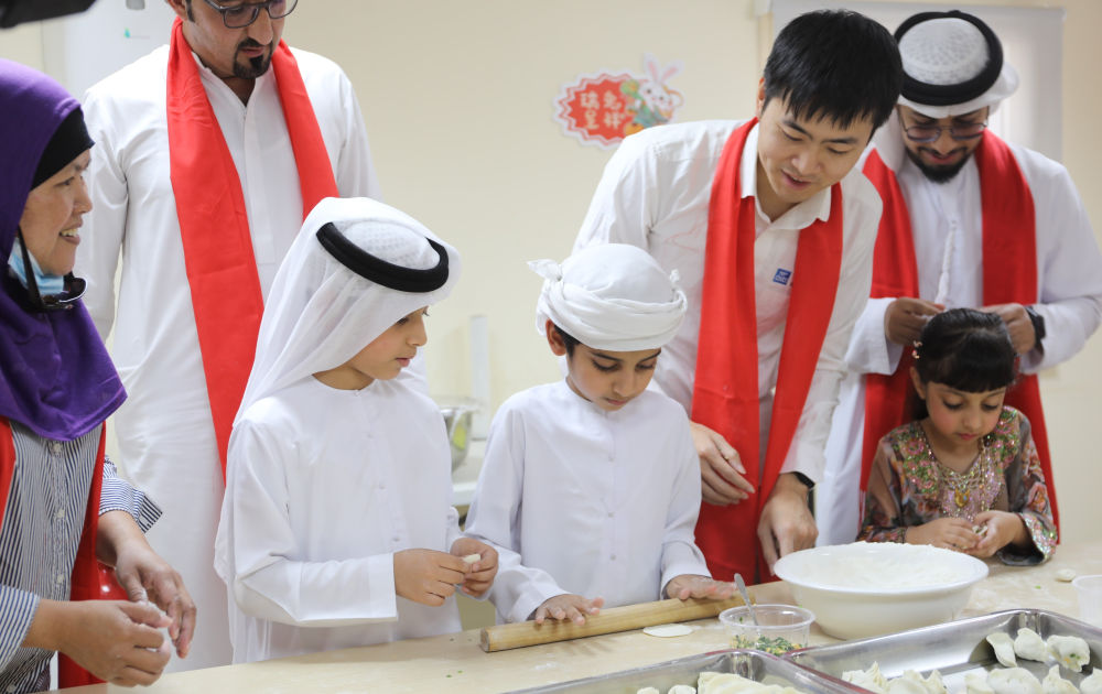 中建中东公司中外籍员工与阿联酋迪拜大学孔子学院学生联合举办的“巳巳如意”主题春节庆祝活动上,参与者饶有兴致地描绘“福”字,体会汉字之美;精致的宋代点茶技艺引来众人围观;而中国非物质文化遗产糖画的制作技艺,更是令人啧啧称赞。