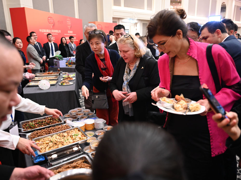 1月19日晚,中国驻伊斯坦布尔总领馆举行新春招待会。来自土耳其伊斯坦布尔的中资企业与中餐馆带来三十多种中国传统美食,让现场土耳其友人从“舌尖上”感受中国年味儿。