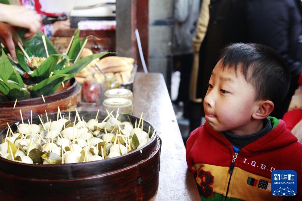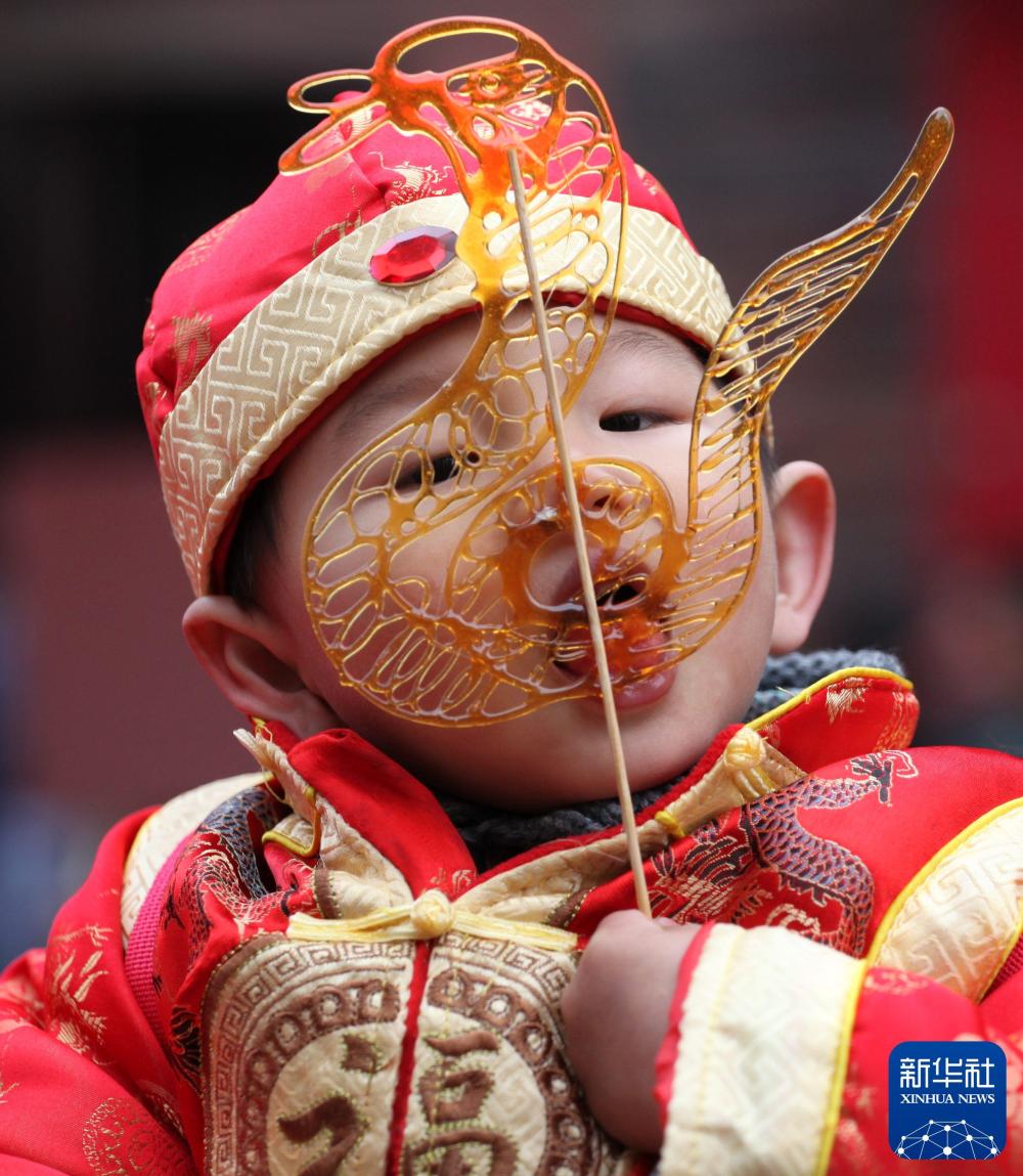 2012年1月30日,一名小朋友站在四川成都大庙会的特色小吃摊位前。新华社记者 刘坤 摄2013年2月11日,一名小朋友在江苏南京湖南路的民俗文化庙会上品尝糖画。新华社发(李文宝 摄)2014年2月3日,湖南长沙火宫殿春节庙会上,一名女孩正在看工作人员摆放制作好的糍粑。新华社记者 李尕 摄2014年2月2日,北京厂甸庙会的工作人员用大茶壶冲制老北京茶汤。新华社发(赵冰 摄)2023年1月25日,游客在山东济南千佛山新春游园会上选购美食。新华社记者 朱峥 摄非遗入景
