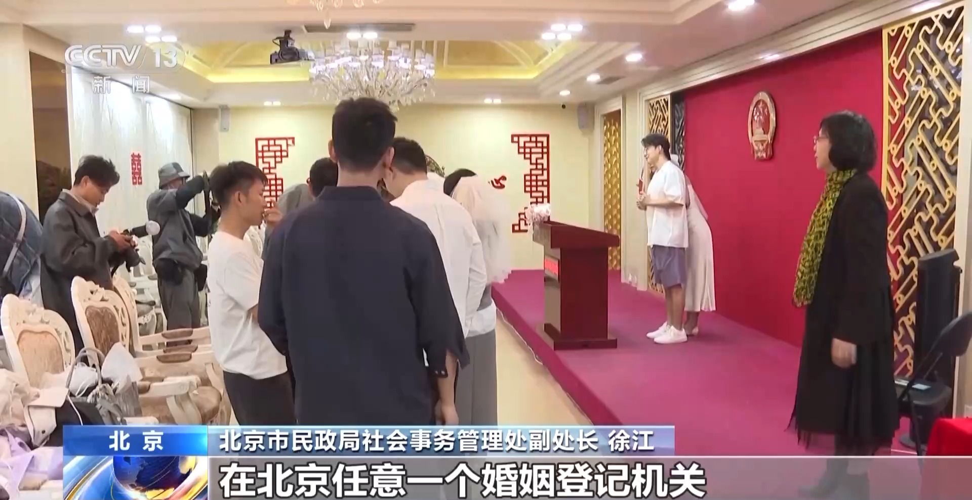 北京市民政局社会事务管理处副处长 徐江:婚姻登记“全国通办”打破了婚姻登记当事人户籍地限制,在北京任意一个婚姻登记机关都可以办理婚姻登记业务,无须回到户籍所在地,真正实现了让数据多跑路,让群众少跑腿。