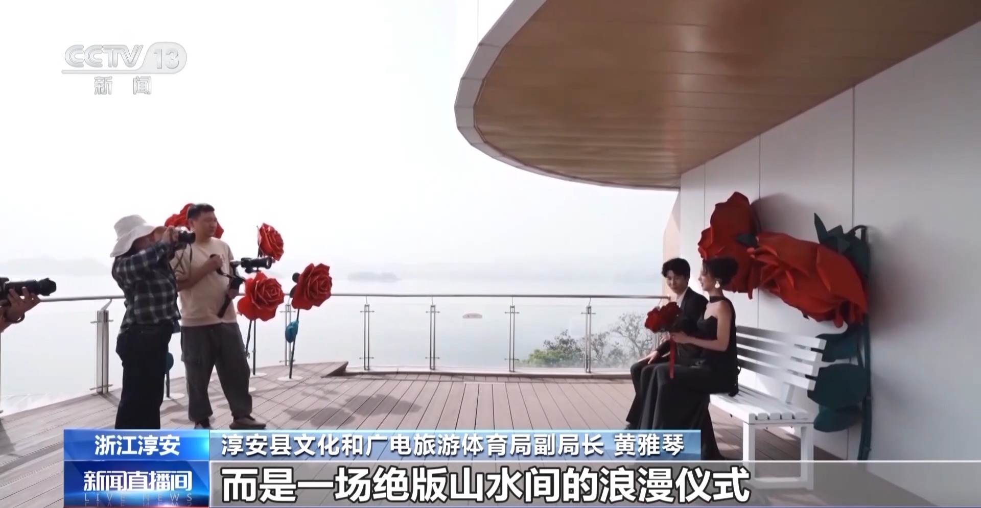 淳安县文化和广电旅游体育局副局长 黄雅琴:我们把婚登中心搬进5A景区,打造具有千岛湖辨识度的甜蜜经济。在这里,领证不是简单的盖章签字,而是一场绝版山水间的浪漫仪式,希望千岛湖可以成为新人们幸福启航的见证。