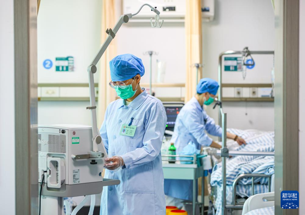 5月12日,四川省达州市中西医结合医院护士在病房护理患者。新华社发(邓良奎 摄)