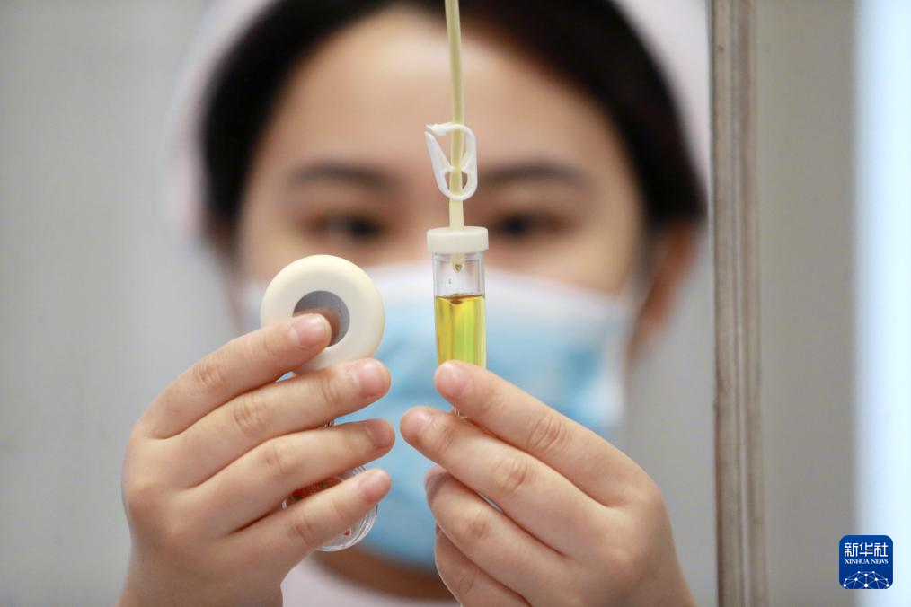 5月12日,武汉大学中南医院胸外科护士为患者输液做准备。新华社发(赵军摄)
