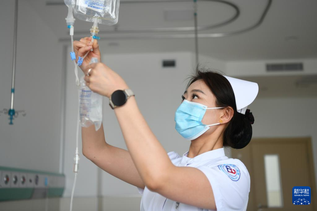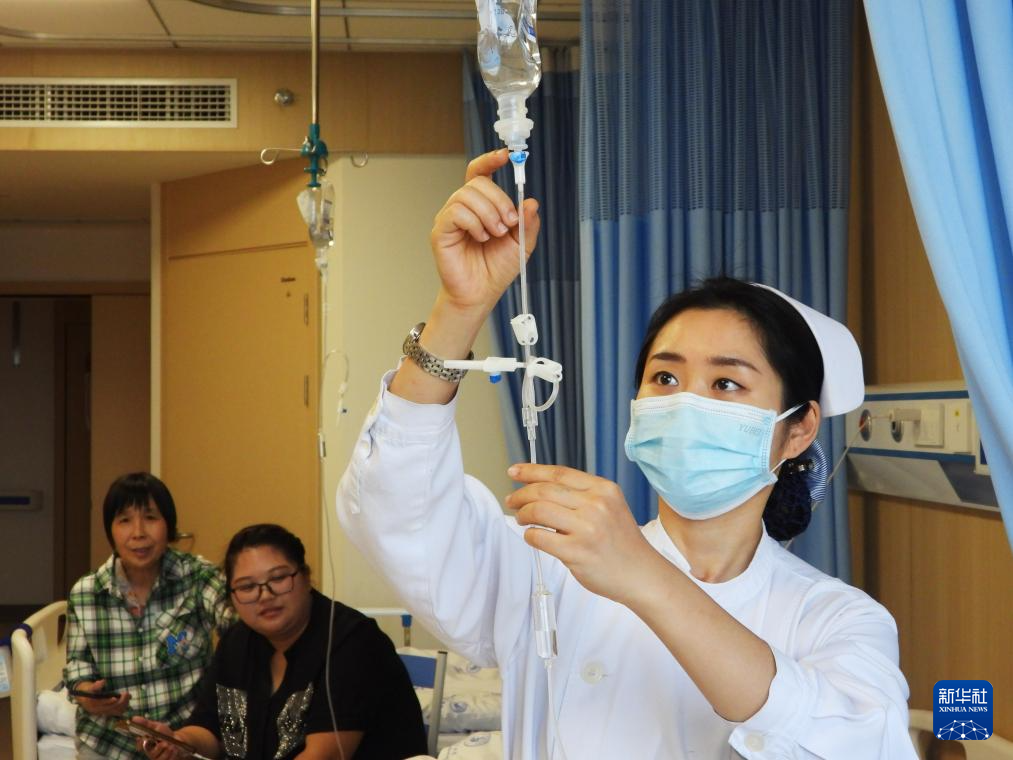 5月12日,黑龙江省绥化市第一医院的护士在对患者进行输液。新华社发(刘华鹏摄)