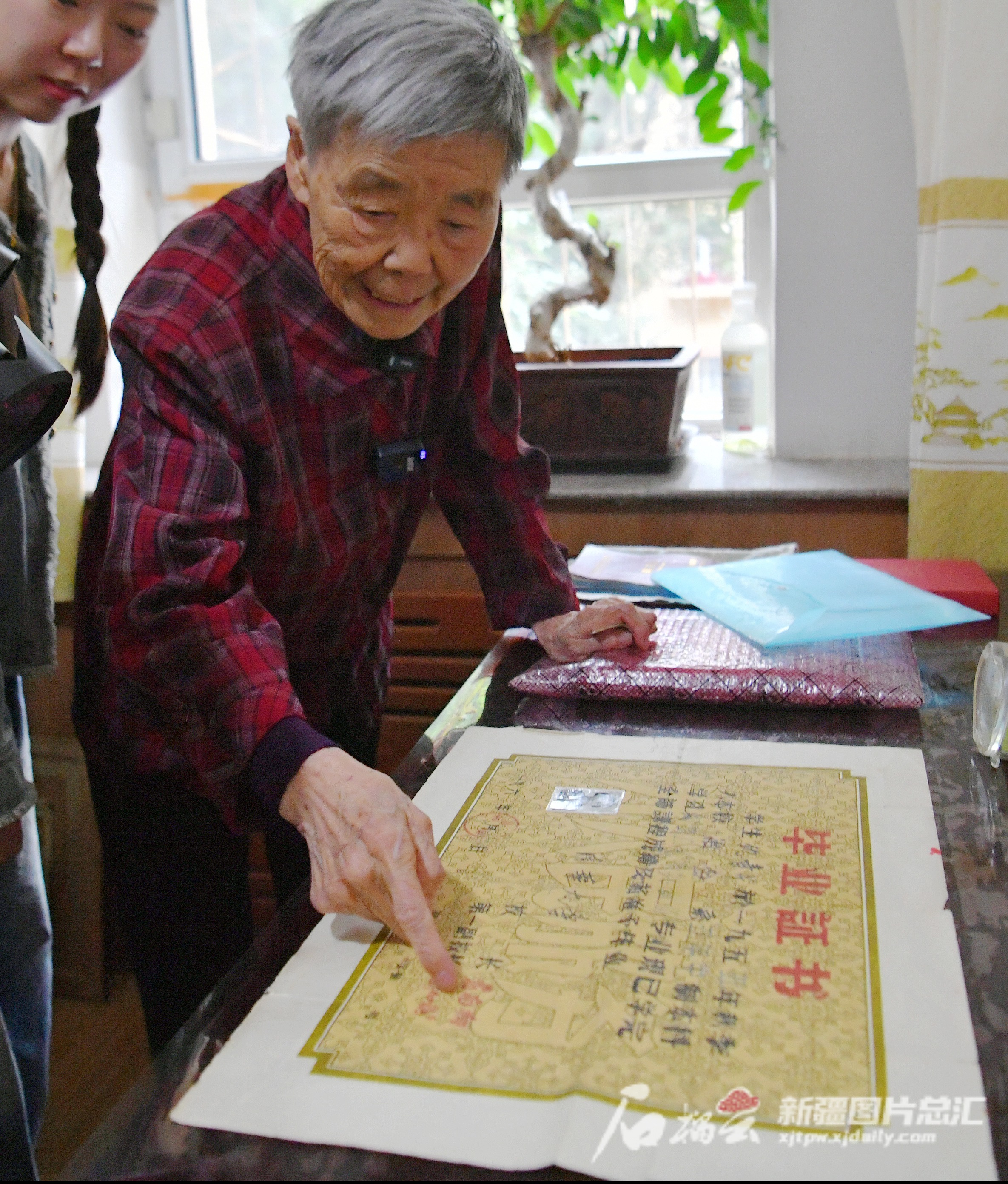 9月5日,新疆大学机械工程退休专家仇素芹向记者介绍自己清华大学的毕业证书。天山网-新疆日报记者 邹懿 摄