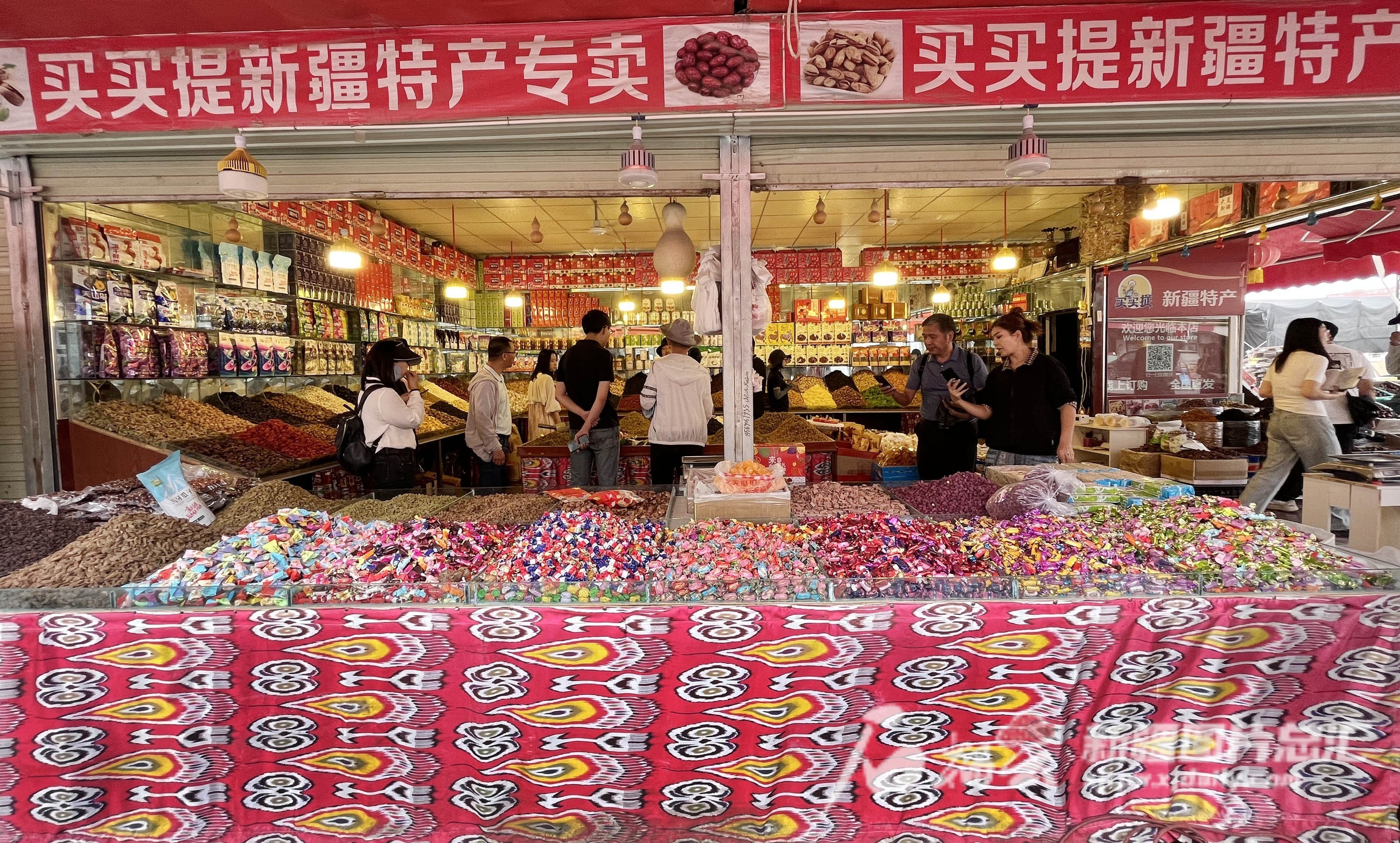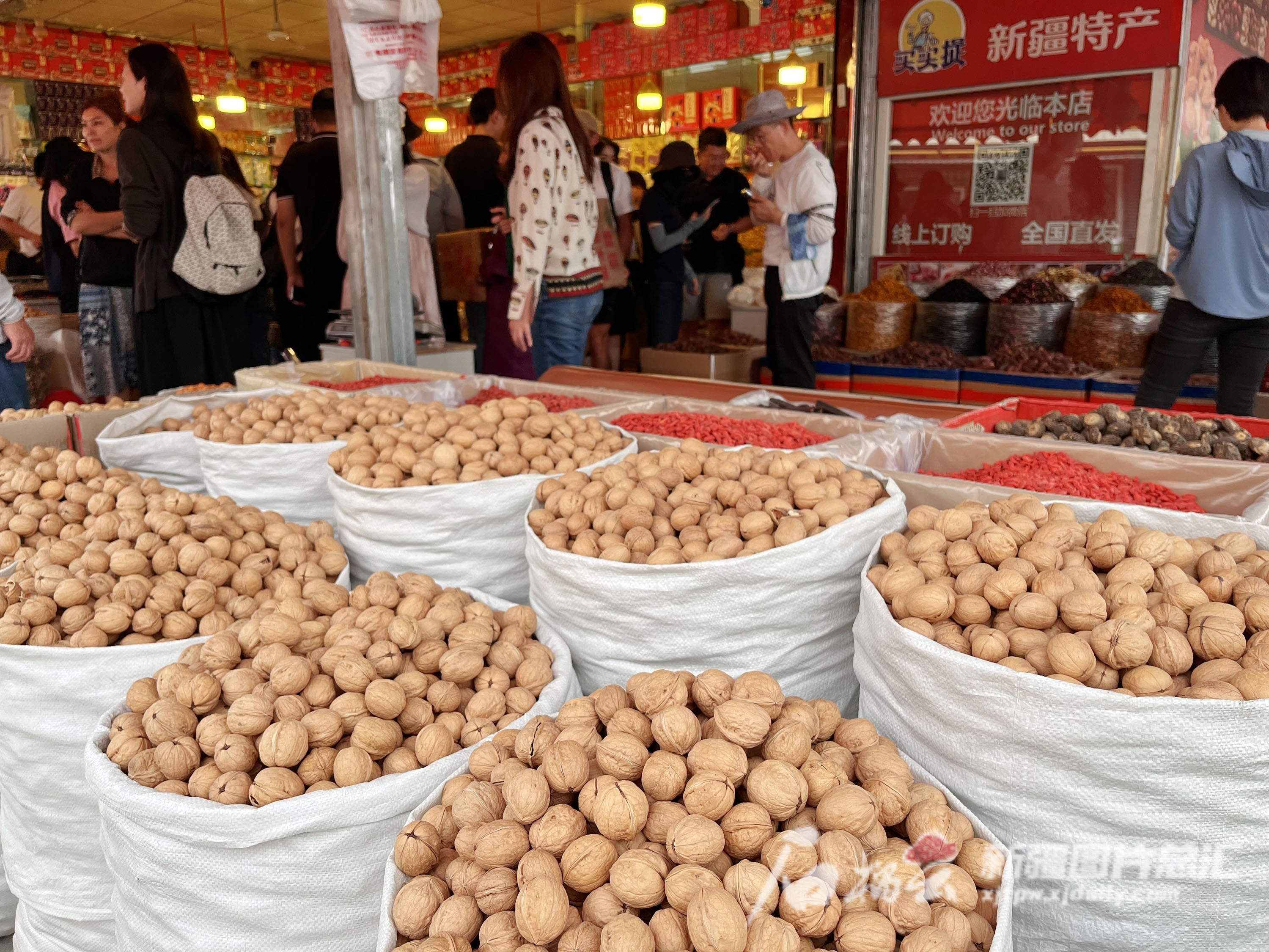 9月16日,游客在新疆果业农产品交易中心一家干果店选购农产品。