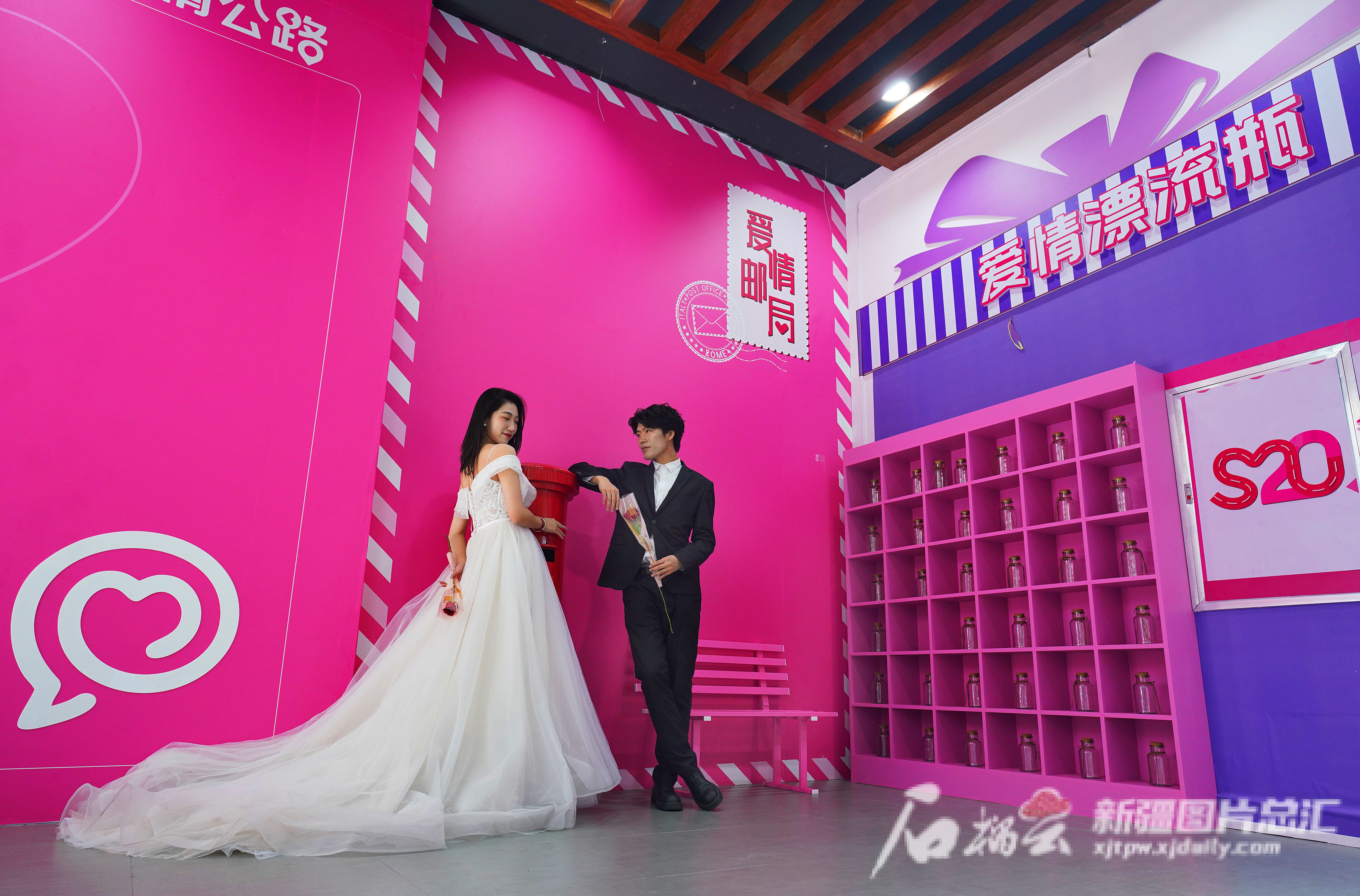 9月27日,“S20爱情公路”朱家庄“爱情博物馆示范服务区”,一对模特在拍照。