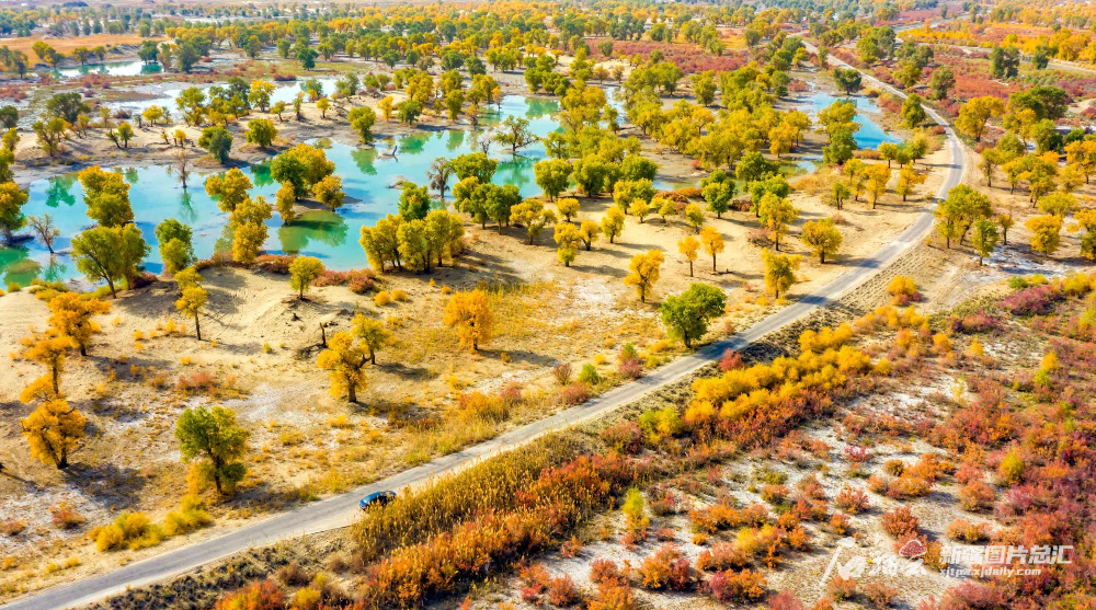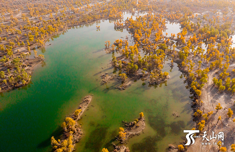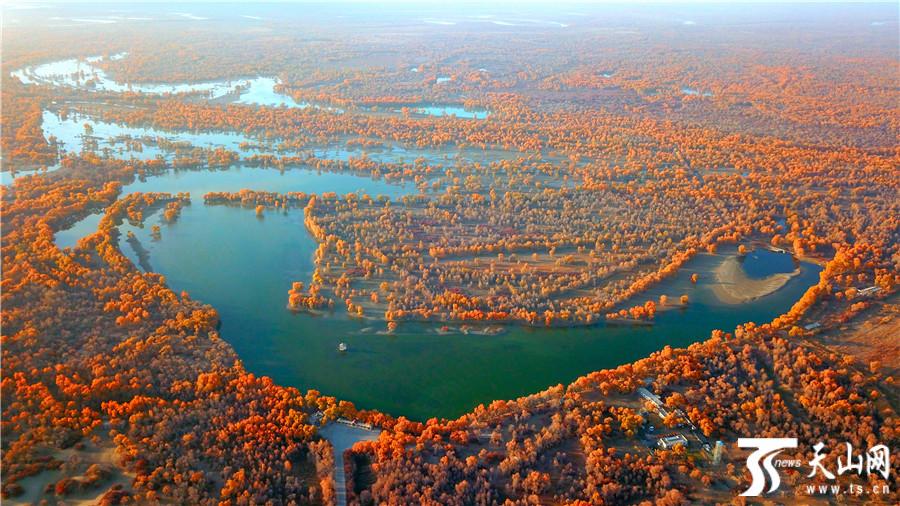 航拍秋日的塔里木胡杨林国家森林公园。确·胡热 摄