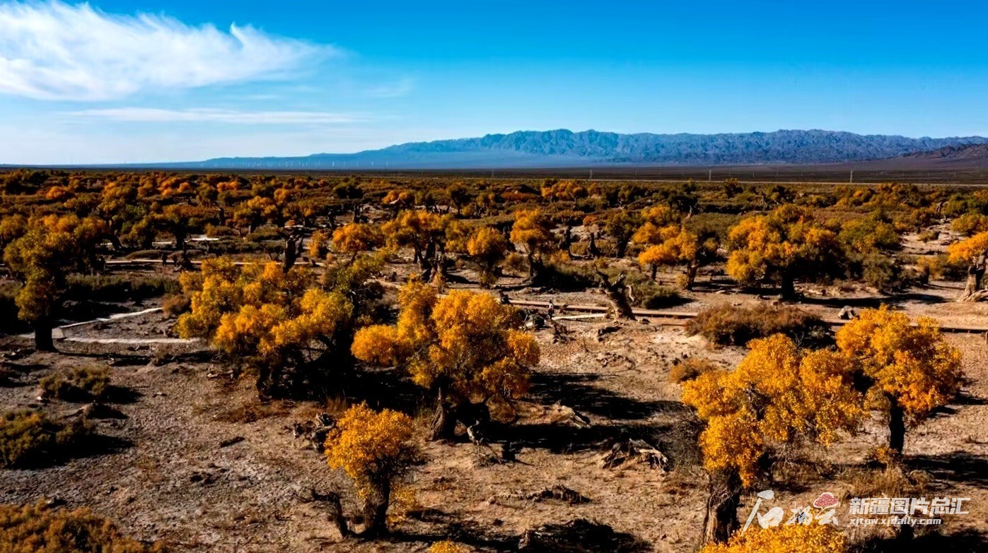 在瀚海戈壁、塔里木河两岸汇成金色林海