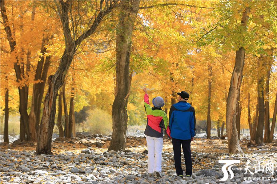 游客在泽普县金湖杨景区游玩。帕尔哈提·阿布力米提 摄