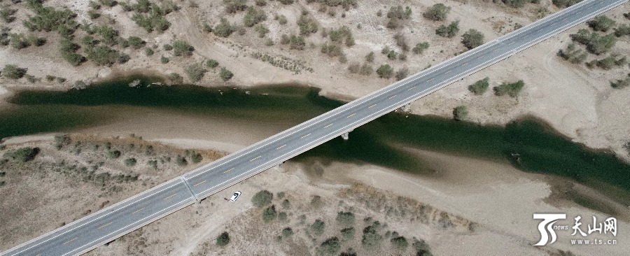 俯瞰尉且沙漠公路尉犁县段。确·胡热摄